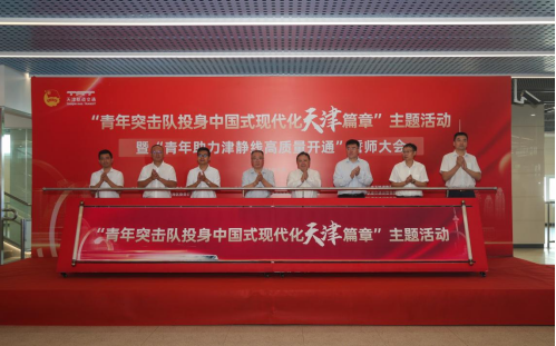 9月19日上午,由团市委、静海区委和天津轨道交通集团党委主办的“青年突击队投身中国式现代化天津篇章”主题活动暨“青年助力津静线高质量开通”誓师大会,在津静线首开段工程团泊健康城站举行。静海区委书记刘春雷,天津轨道交通集团党委书记、董事长吴秉军出席并讲话。团市委副书记成子金和天津轨道交通集团等单位有关领导出席。