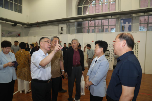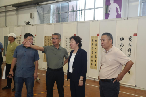 9月20日,由区政协和区总工会联合举办的“浓墨重彩迎国庆,凝心聚力铸忠诚”静海区优秀书画作品展在区模范中学开展。区委书记刘春雷、区政协主席窦双菊出席并与书画爱好者共同参观书画展。