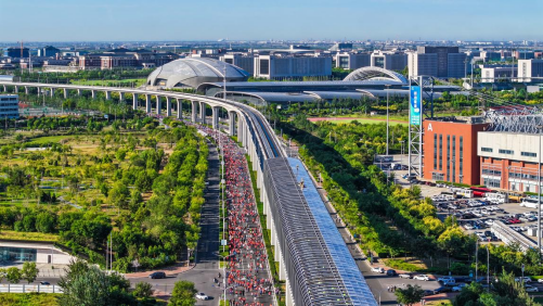 上午8时,出席开幕式的领导和嘉宾一同为本次大赛开跑鸣枪。随着现场清脆的发令枪声响起,位于第一方阵的4000名“半马”选手如离弦之箭率先冲出起跑线,随后欢乐跑的2000名参赛跑友也快速起跑,大家不论是专业选手还是业余爱好者,男女老少齐上阵都在用奔跑证明自己对生活的热爱、对健康的追求,在团泊健康城的最美赛道上感受速度与激情,一起向湖、向海、向健康。
