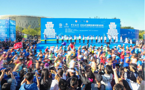 中国银行·2024天津团泊湖半程马拉松,由静海区人民政府与天津市体育局联合主办,静海区体育局、天津市田径运动管理中心、天津健康产业国际合作示范区管理委员会以及团泊湖之春(天津)体育发展有限责任公司联合承办。作为今年天津首个被中国田径协会认证为A1类的半程马拉松项目,参赛选手总规模达到6000人,其中“半马”(21.0975公里)4000人,欢乐跑(4公里)2000人。本次赛事路线选取带有体育与健康基因的团泊健康城,“半马”选手从天津国际网球中心北侧起跑,途经长海道、北华北路、东海道、鄱阳湖路、北华南路、团泊大道、西支路、洪泽湖路、环湖西路、独流减河南堤路,最终通过体育大道回到天津国际网球中心。精心优化设计的比赛路线,打卡团泊湖周边多个“文旅+体育”点位,优美的自然风光和跃动的竞技魅力,生动诠释了“休闲来静海、让心静下来、身体动起来”的人文内涵,人在画中跑、景在赛中赏,马拉松邂逅团泊洼的秋天,为赛事注入了活力与浪漫。