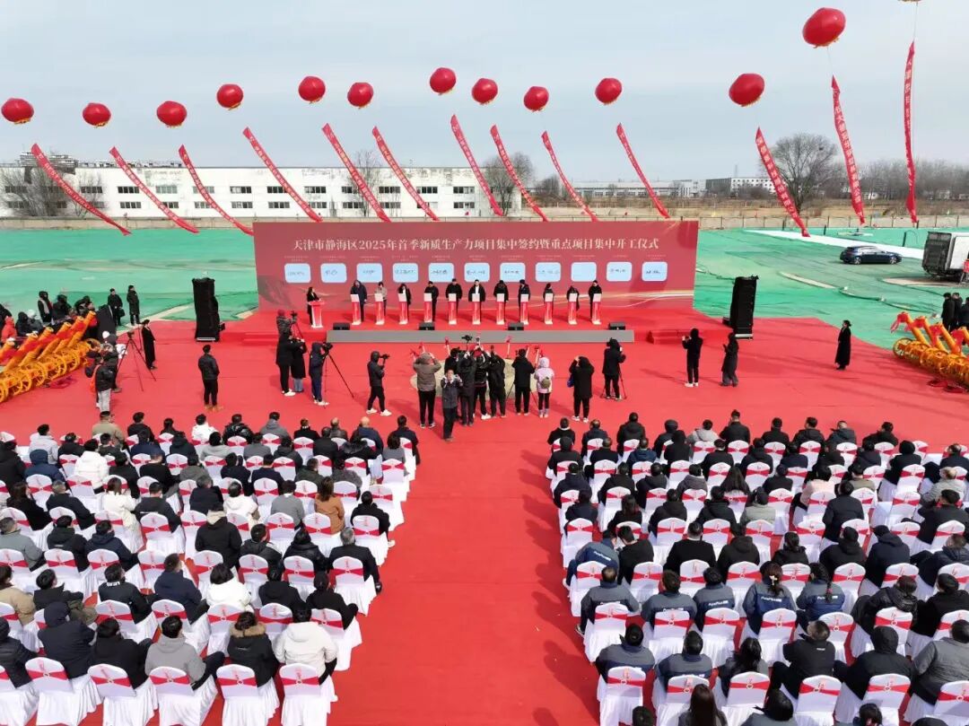 签约仪式后随即举行重点项目集中开工仪式,远大健康科技(天津)股份有限公司等14个项目负责人分别介绍项目基本情况,表达了加快项目开工建设的信心和决心。随着区委书记殷学武宣布静海区2025年首季重点项目集中开工,在各项目开工现场机器轰鸣,施工人员紧张建设,吹响了加速项目建设的新春冲锋号。