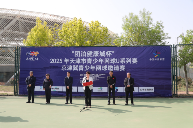 4月20日,“团泊健康城杯”2025 年天津市青少年网球U系列赛暨京津冀青少年网球邀请赛开赛仪式在天津国际网球中心举行。市体育局副局长吴卫凤讲话并宣布比赛开幕。静海区副区长白冰冰致辞。市网球管理中心、滨海团泊新城(天津)控股有限公司、区体育局等部门负责同志出席。