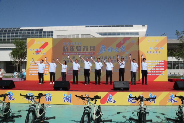 据悉,此次以“骑聚团泊湖,点亮新未来”为主题的欢乐骑行月暨自行车主题运动会,立足产业与生态双重优势,精心策划公路自行车职业赛、AI骑行赛、亲子嘉年华等全龄骑行系列活动,为骑行爱好者打造覆盖静海全域、联动整个津城的自行车相关赛事活动15场。在当天活动现场还设置了儿童平衡车、小轮车展示及体验,“运动之都”主题风筝展示和亲子风筝绘制以及包括静海非遗展示和特色农产品、文创产品在内的体育市集,各项活动充满健康运动元素和快乐基因,呈现“赛、展、游、乐、购”五大板块,进一步培育赛事新业态、拓展消费新场景、探索发展新模式。