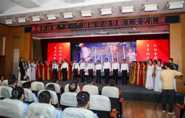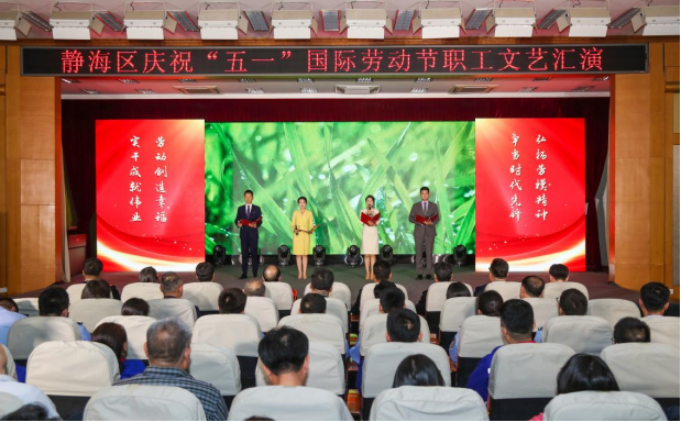 4月30日下午,在“五一”国际劳动节来临之际,静海区举办“百年工运铸辉煌 勇担使命谱华章”暨庆祝“五一”国际劳动节职工文艺汇演,热烈庆祝中华全国总工会成立100周年,进一步弘扬劳模精神、劳动精神、工匠精神,激励广大职工群众践行“四个善作善成”,当好主力军、争做排头兵,为加快静海崛起再立新功。区委书记殷学武、区人大常委会主任赵恩海、区政协主席窦双菊出席。区委副书记陈子舟致辞。