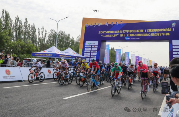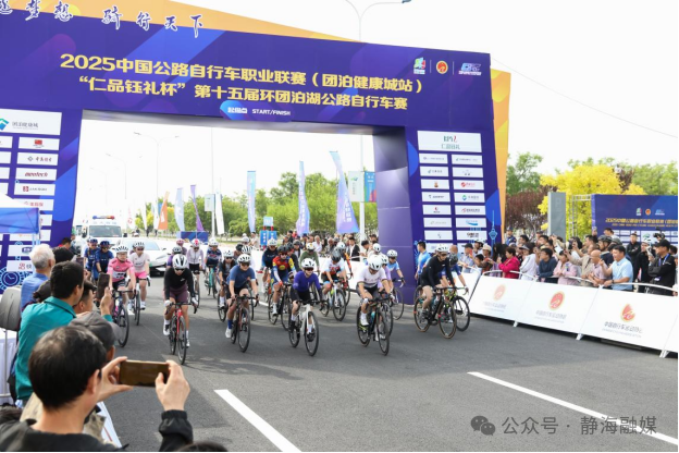 5月18日,2025中国公路自行车职业联赛(团泊健康城站)和第十五届环团泊湖公路自行车赛在风景秀丽的团泊湖畔激情开赛。中国自行车运动协会副秘书长孙连滨宣布2025中国公路自行车职业联赛(团泊健康城站)开赛。副区长白冰冰致欢迎辞并宣布第十五届环团泊湖公路自行车赛开赛。区领导郭颖、周晋民和市体育局、市自行车击剑运动管理中心、中奥体育发展集团、中国邮政储蓄银行静海支行、仁爱集团、区体育局、天津健康产业国际合作示范区负责同志出席开幕式。
