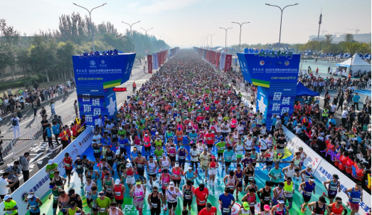 随着发令枪响,所有选手如离弦之箭奔涌而出。本次赛事设置半程马拉松和欢乐跑两个项目,规模达到10000人,其中半程马拉松7000人、健康跑3000人,吸引了全国34个省级行政区的跑者踊跃参与。半程马拉松项目参赛选手大部分是拥有丰富经验的长跑爱好者,呼吸的把控、体力的分配,都展现出了专业的水准。欢乐跑项目的选手们则多了一份轻松与愉悦,他们一边欣赏着沿途的美景,一边享受着跑步带来的快乐,将欢声笑语洒满了整条赛道。今年还新增加了由7个乡镇园区和2个企业代表组成的“团马”体验团。