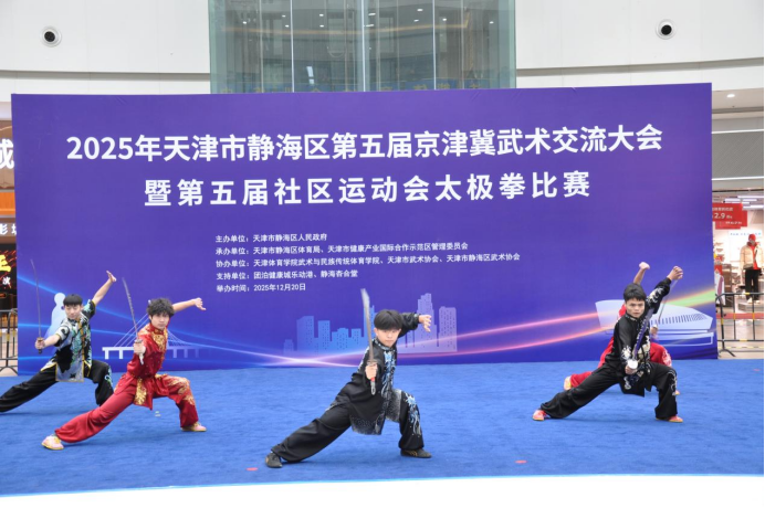 12月20日,天津市静海区第五届京津冀武术交流大会在团泊健康城乐动港举行。来自京津冀三地14支代表队近300名武术爱好者齐聚静海,以武会友、切磋技艺,共同演绎一场精妙绝伦的武术盛宴。静海区副区长白冰冰出席并致辞。
