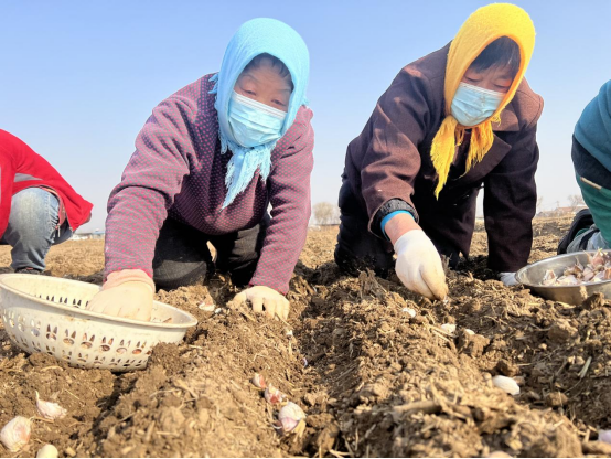 陈官屯镇政府的几名工作人员也深入田间地头,现场了解大蒜种植情况,并进行技术指导。曹村村民一年的希望也由此开启。