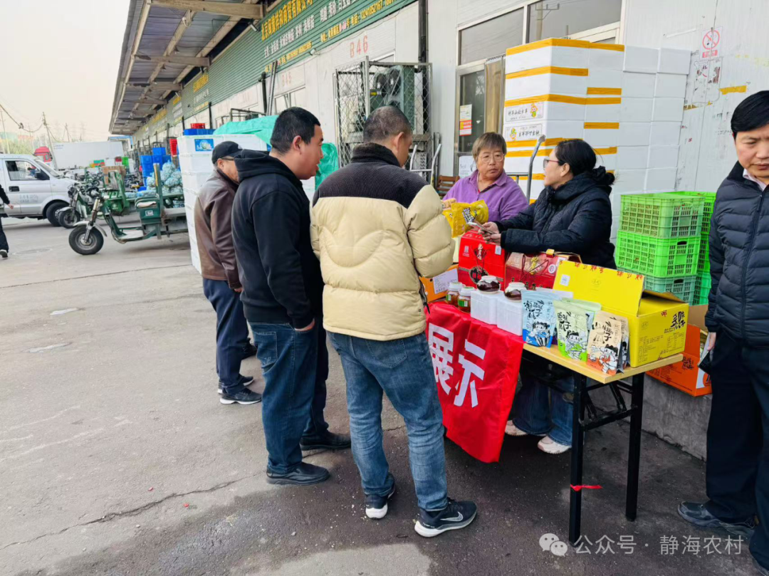 金风送爽、春华秋实。为深化实施京津一体化战略,加快推进更多“津农精品”走上北京市民餐桌,不断擦亮我区“津农精品”金字招牌,近日,在北京新发地农贸市场开展了静海区“津农精品”品牌农产品展销活动。活动选定了“独流老醋”、“五谷香”、“王口炒货”、“金星芝麻油”、“纪老七”和“素厨娘”等9家品牌企业,携带富硒鸡蛋、苹果、蒜蓉辣酱、素烤肉等25种产品参展。现场推介集展示、品尝、体验、促销于一体,涵盖小吃、果品、禽蛋、和调料等品类;通过深入浅出的讲解、喜闻乐见的形式,把“静味”土特产的文化、品质、特色一一呈现,吸引大批顾客纷纷品鉴体验,得到一致好评。此次举办“津农精品”北京展销会,既为我区农业品牌企业提供了展示自身实力魅力的舞台,更为广大经销商、采购商搭建了交流合作的桥梁,为拓展北京高端消费市场贡献了积极力量。通过面对面推介、零距离展销,形象展现了我区独具特色的品牌农产品发展成果,也让越来越多的消费者了解并喜欢上静海特色农产品,有力有效扩大了静海“津农精品”影响力。