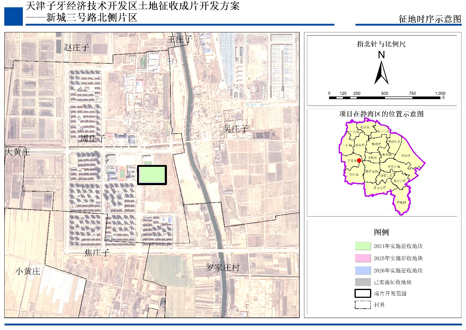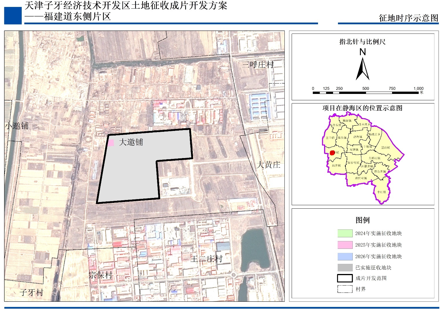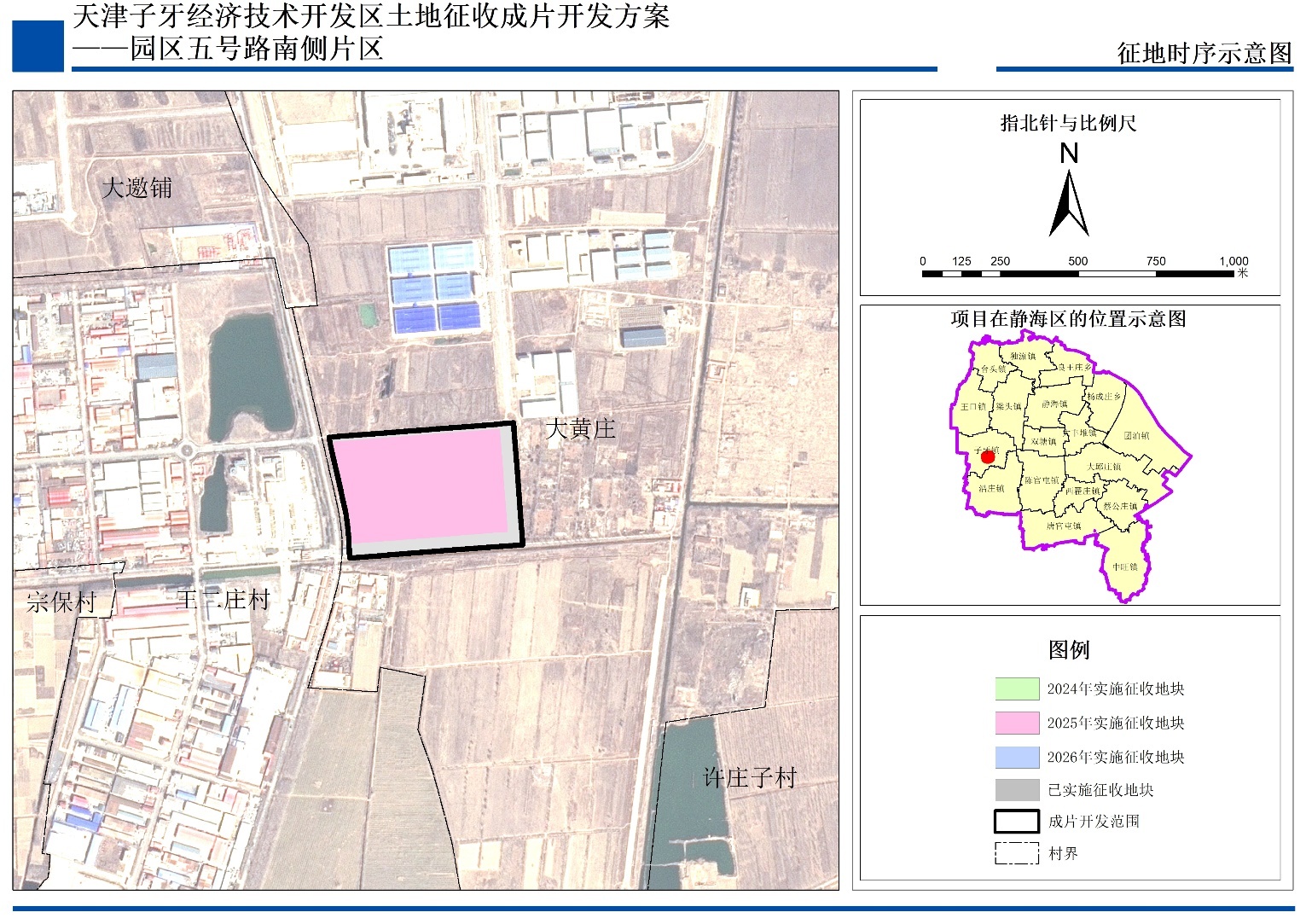 根据2020年1月1日起实施的《中华人民共和国土地管理法》第四十五条规定、自然资源部《土地征收成片开发标准》(自然资规〔2023〕7号)、《天津市土地征收成片开发标准实施细则》(津规资源发〔2024〕1号)和《天津市土地征收成片开发方案编制报批指南》(津规资源发〔2024〕29号)要求,结合静海区发展需要,组织编制了《天津子牙经济技术开发区土地征收成片开发方案》,(以下简称“《方案》”),现将《方案》核心内容予以公示,主要内容如下: