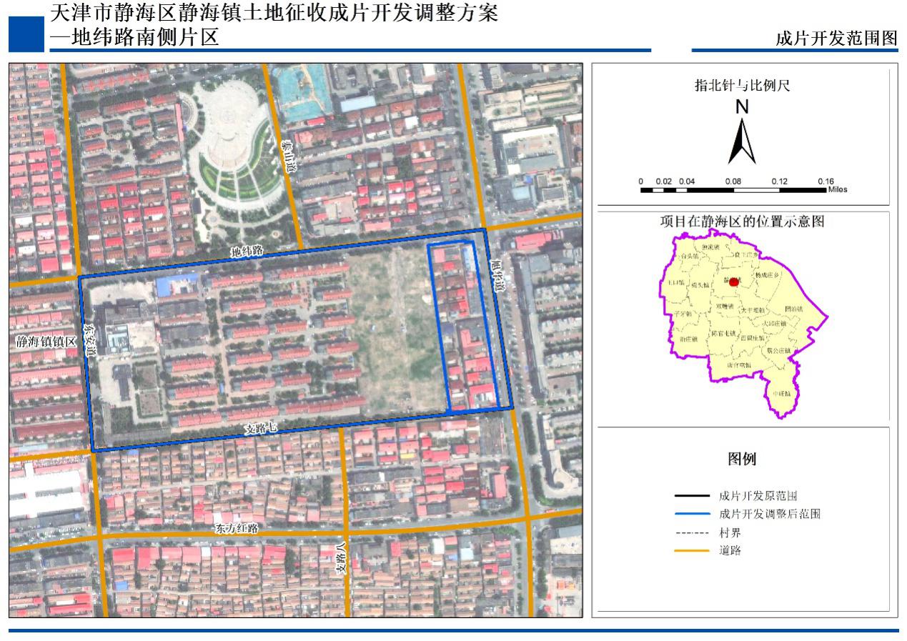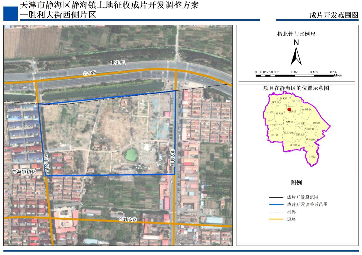 根据2020年1月1日起实施的《中华人民共和国土地管理法》第四十五条规定、自然资源部《土地征收成片开发标准》(自然资规〔2023〕7号)、《天津市土地征收成片开发标准实施细则》(津规资源发〔2024〕1号)和《天津市土地征收成片开发方案编制报批指南》(津规资源发〔2024〕29号)要求,结合静海区发展需要,组织编制了《天津市静海区静海镇土地征收成片开发调整方案》,(以下简称“《方案》”现将《方案》核心内容予以公示,主要内容如下: