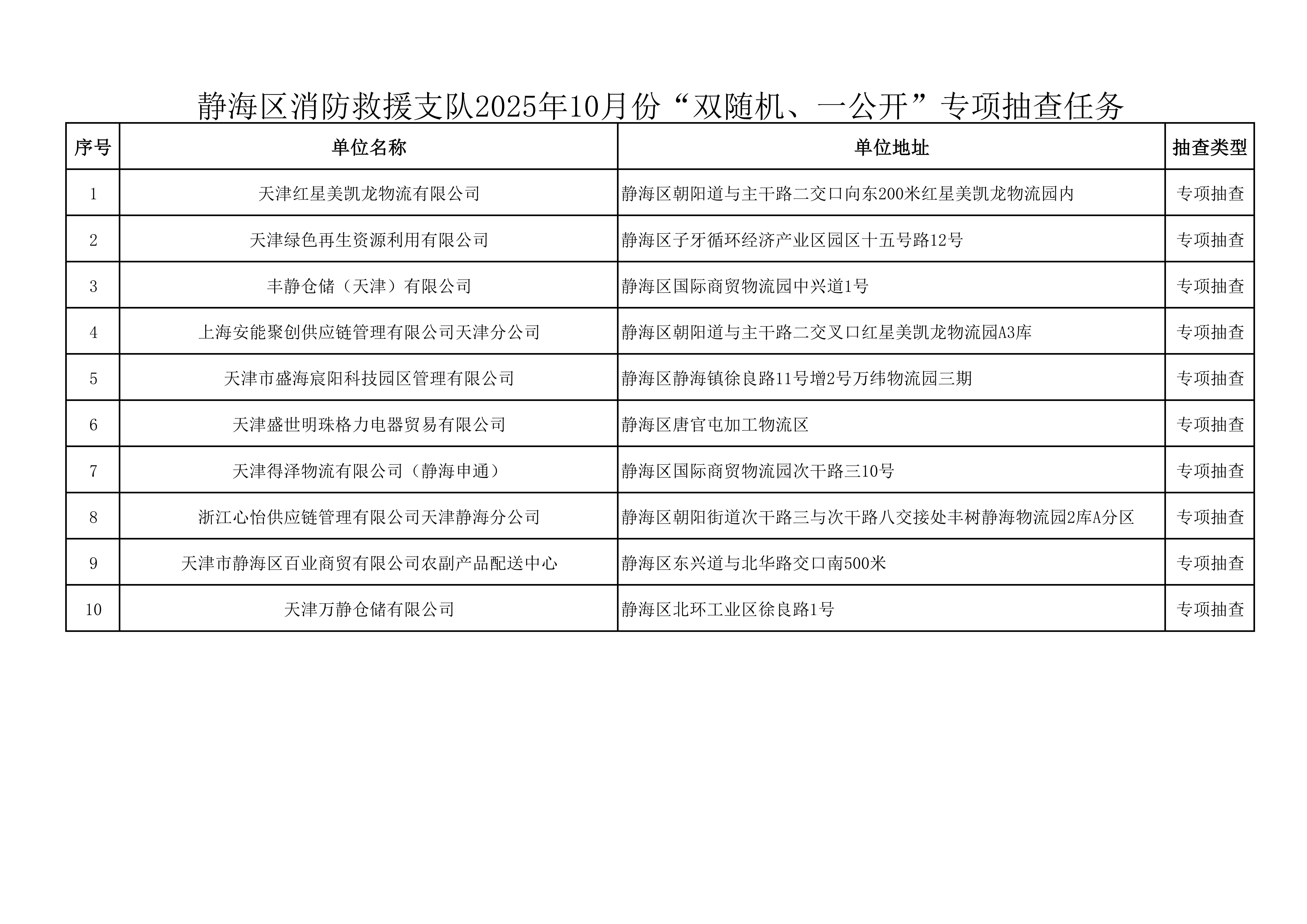 关于10月份“双随机、一公开” 专项抽查任务的公示