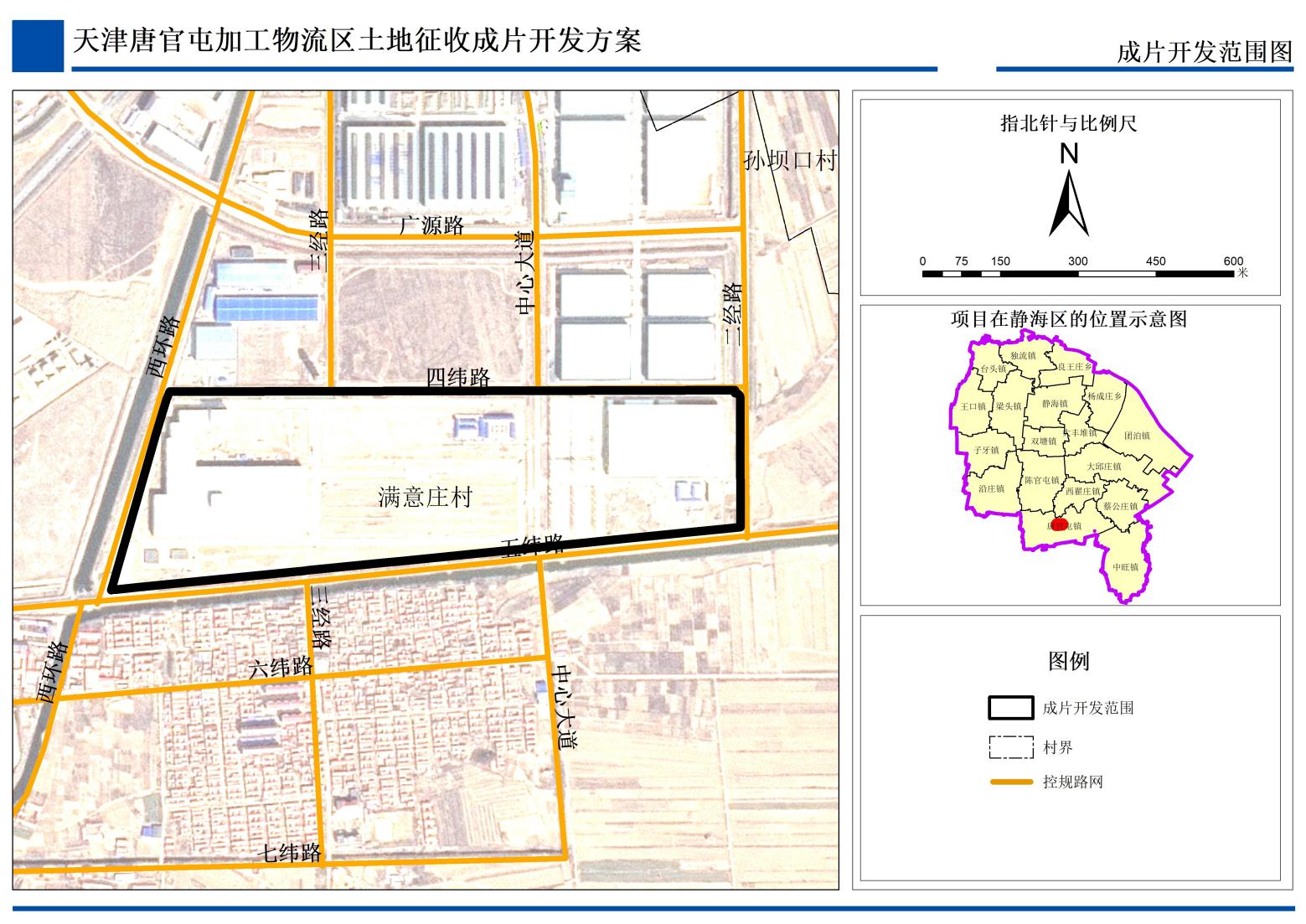 成片开发区域位于天津市静海区唐官屯镇,总面积37.15公顷,国有土地32.02公顷,集体土地5.13公顷,四至范围为:东至二经路、南至五纬路以北约80米处、西至西环路、北至四纬路。