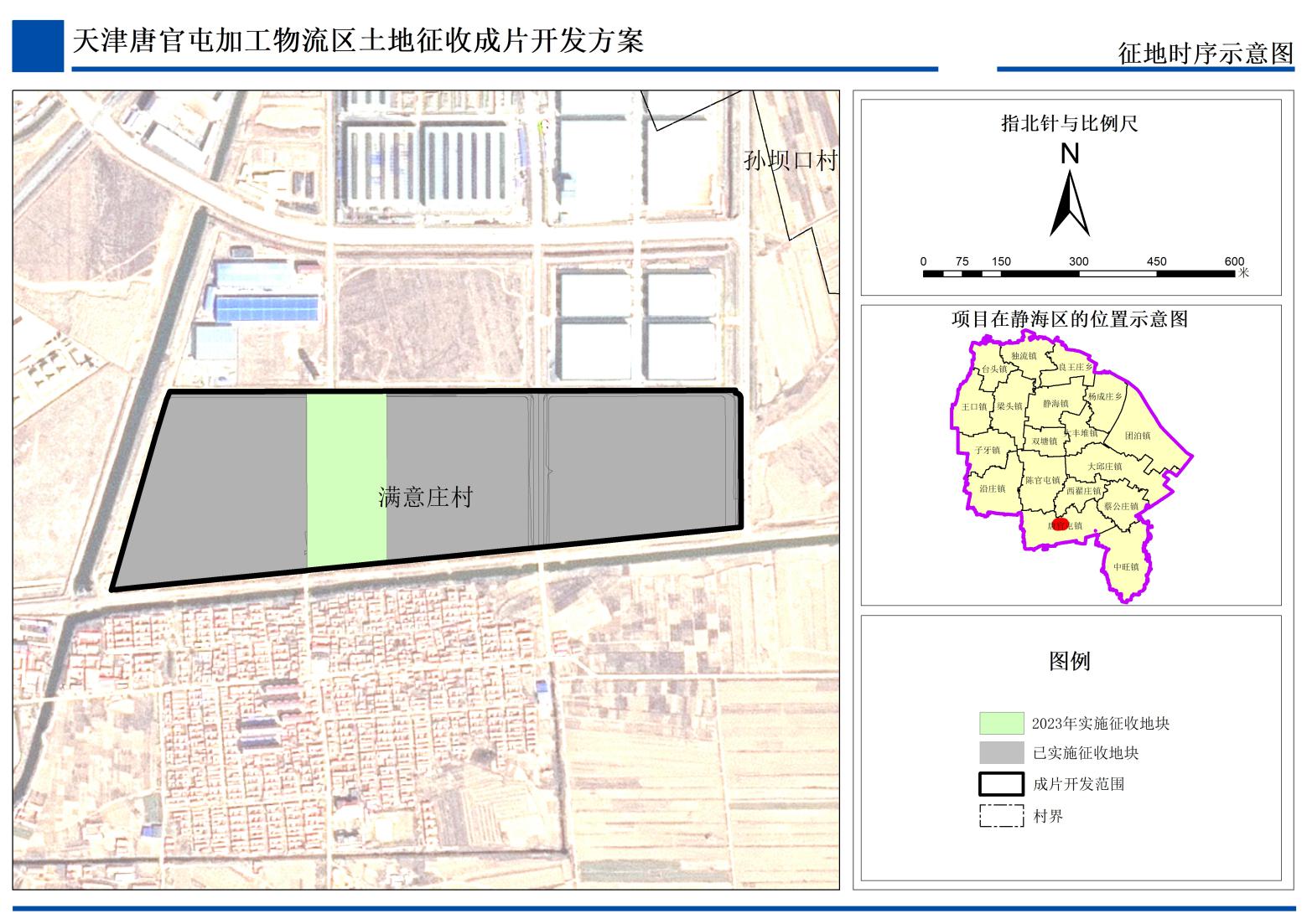 根据2020年1月1日起实施的《中华人民共和国土地管理法》第四十五条规定、自然资源部《土地征收成片开发标准(试行)》(自然资规〔2020〕5号)、《天津市土地征收成片开发标准实施细则(试行)》(津规资源发〔2021〕80号)和《天津市土地征收成片开发方案编制报批指南(试行)》(津规资源发〔2021〕145号)要求,结合静海区发展需要,组织编制了《天津唐官屯加工物流区土地征收成片开发方案》,(以下简称“《方案》”),现将《方案》核心内容予以公示,主要内容如下: