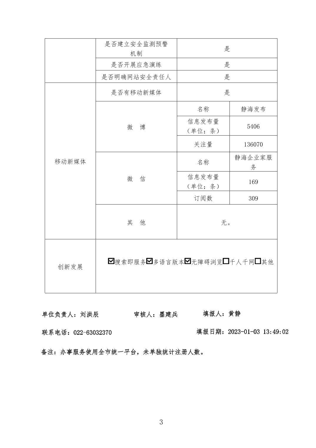 天津市静海区2022年度网站工作年度报表