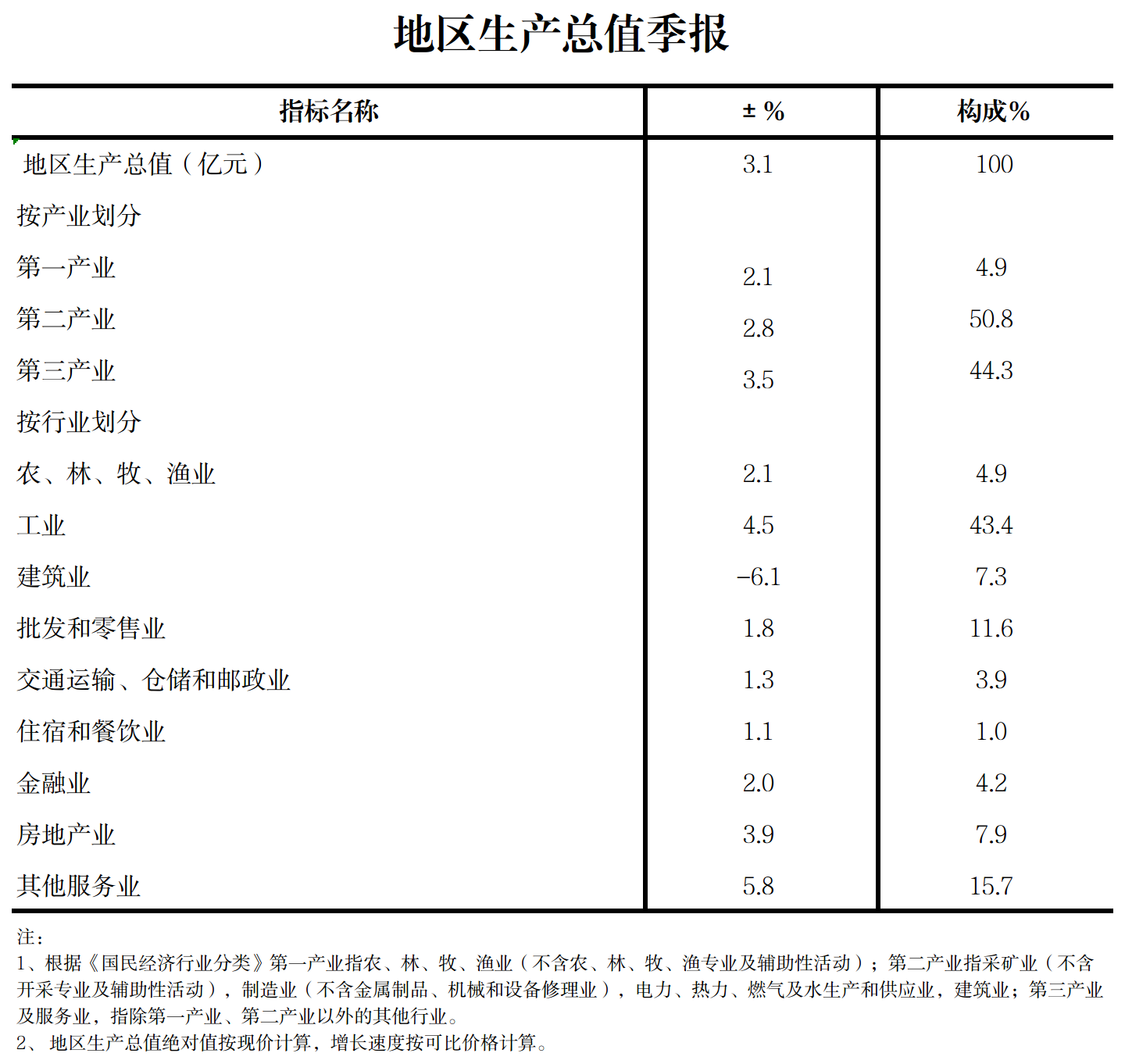 地区生产总值(季报)