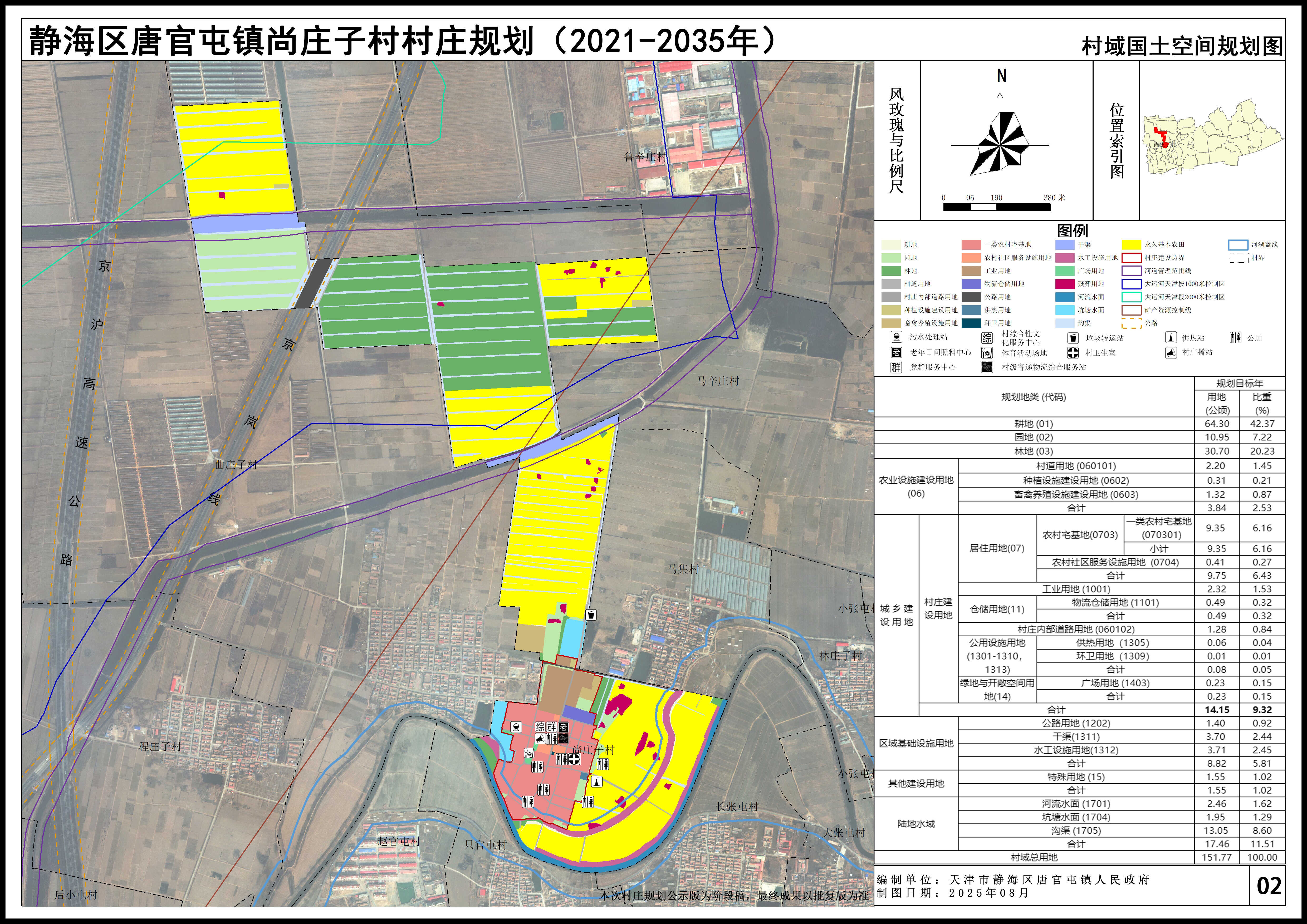 为贯彻落实乡村振兴战略要求,进一步优化土地资源配置,引导农村规划建设和土地利用,加强村级管理,促进城乡统筹发展,根据国家及天津市相关法律法规、政策文件及规范标准的要求,唐官屯镇为保证村庄人居环境、民生建设,结合天津市静海区尚庄子村实际发展情况调整村庄规划。