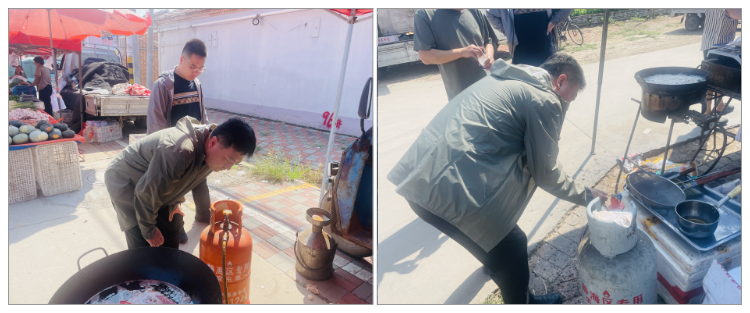 针对集市内使用液化气罐的餐饮摊点、流动摊贩进行了重点排查,仔细检查燃气罐、软管、阀门、灶具等是否符合安全标准、是否超出使用年限、是否存在漏气隐患等情况,并向经营户详细讲解燃气安全使用规范和应急处置方法,对发现的问题要求立即整改或限期整改,坚决杜绝安全事故发生。