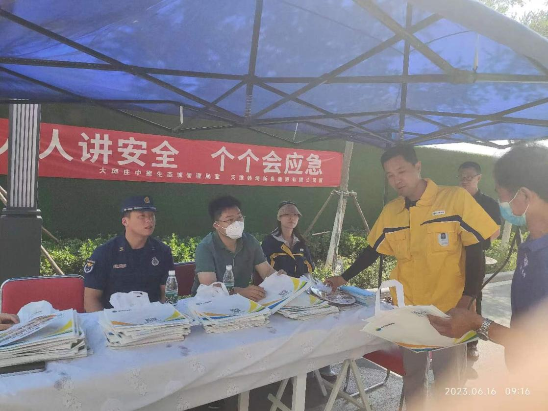 为进一步增强辖区居民安全生产意识,预防和减少安全事故发生,6月16日上午,中德生态城管理局联合静海区消防救援支队、天津静海新奥能源有限公司、天津合泰安全科技有限公司在宝能住宅小区联合开展以“人人讲安全,个个会应急”为主题的安全宣传进社区活动。