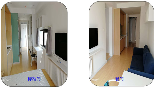 白领公寓的房间分为标准间和套间,其中标准间每间18㎡,共计286间,套件每间36㎡,共计6间,可容纳292位住客。