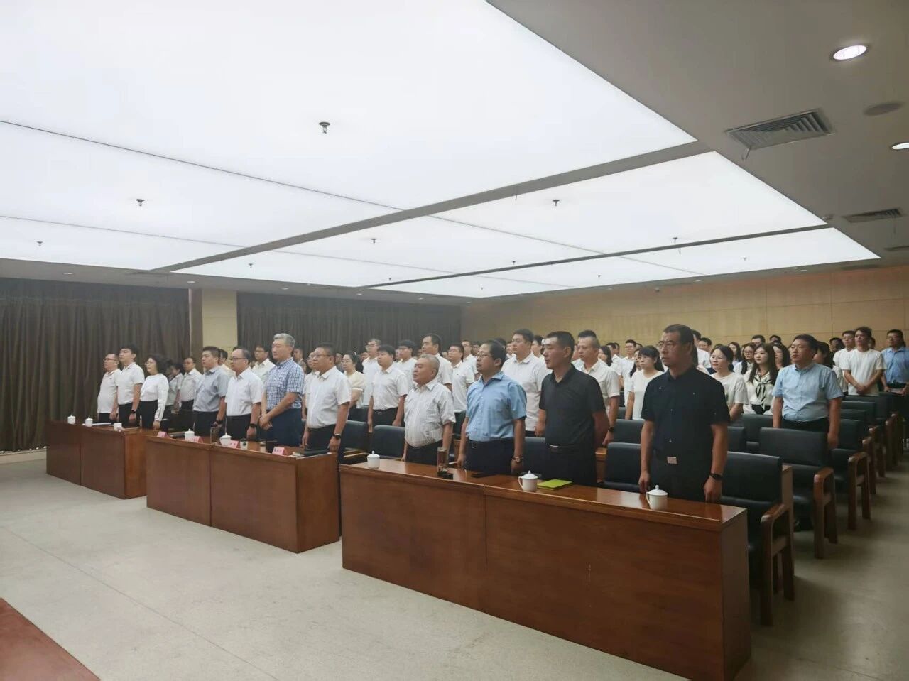 9月3日上午,子牙经开区组织全体干部职工集中观看在北京天安门广场举行的纪念中国人民抗日战争暨世界反法西斯战争胜利80周年大会及阅兵式直播。与会人员在庄严的国歌声中肃立,认真聆听习近平总书记重要讲话,随后共同见证徒步方队、战旗方队、装备方队和空中梯队依次通过天安门,新一代国产现役主战装备集中亮相,其中不少为首次公开,充分展现我军体系化、信息化、智能化建设成就。观看结束后,大家纷纷表示将铭记历史、缅怀先烈,立足岗位、担当作为,为强国建设、民族复兴贡献力量。